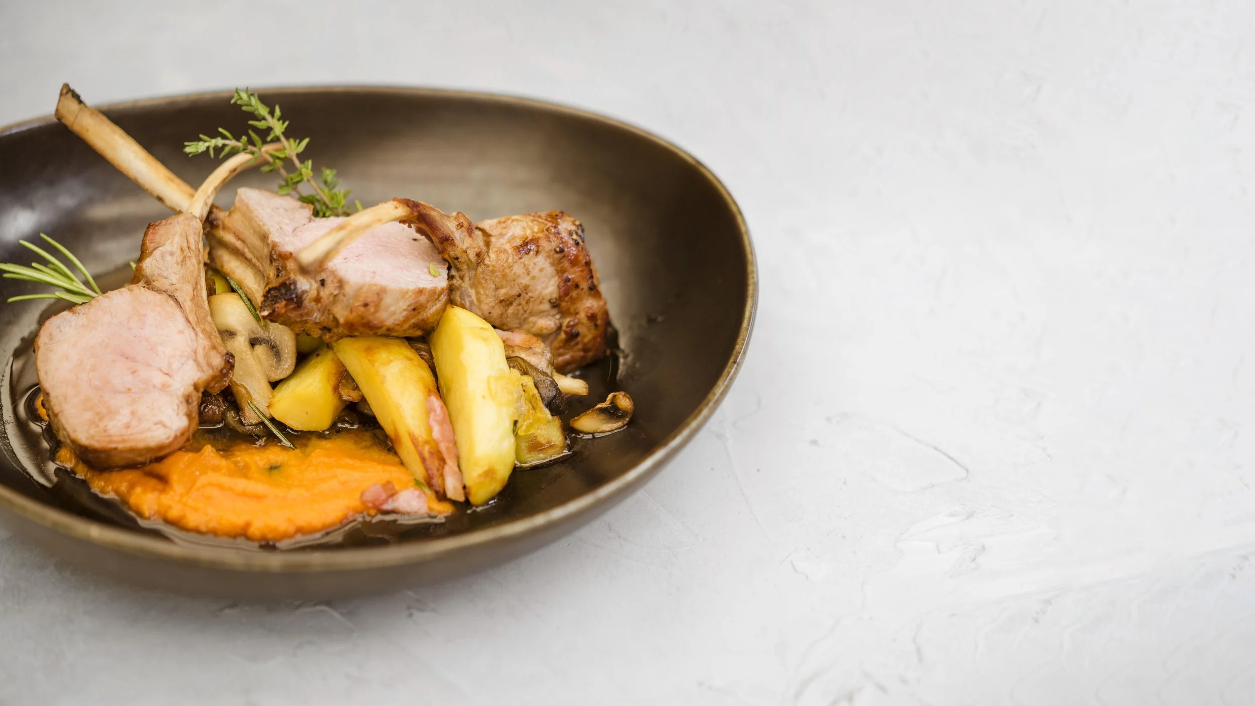 Roasted Lamb Rack with Rosemary Potatoes (50 min): Season and roast a lamb rack with fresh rosemary. Roast cherry tomatoes and potatoes alongside for a complete meal.