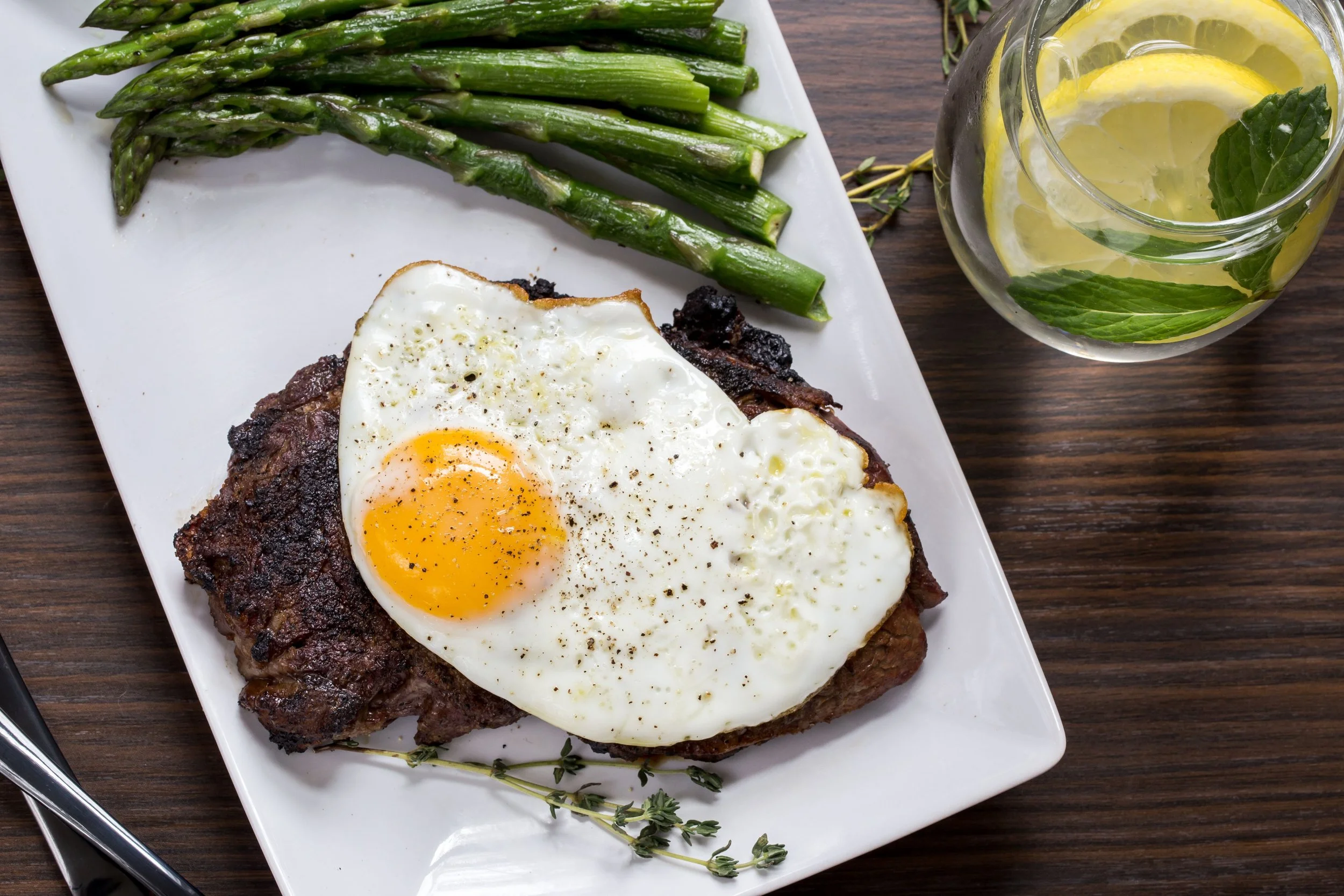 Steak and Eggs (25 min): Pan-fry thin steak slices and serve with fried eggs, sautéed mushrooms and some coriander or flat leaf parsley.